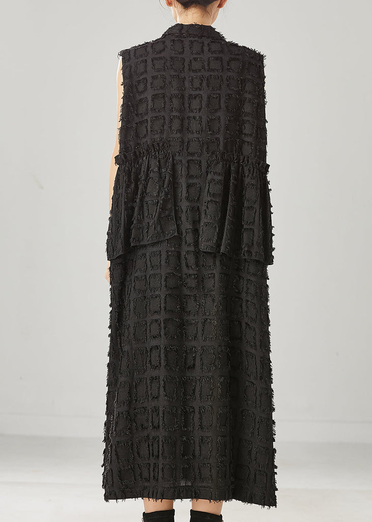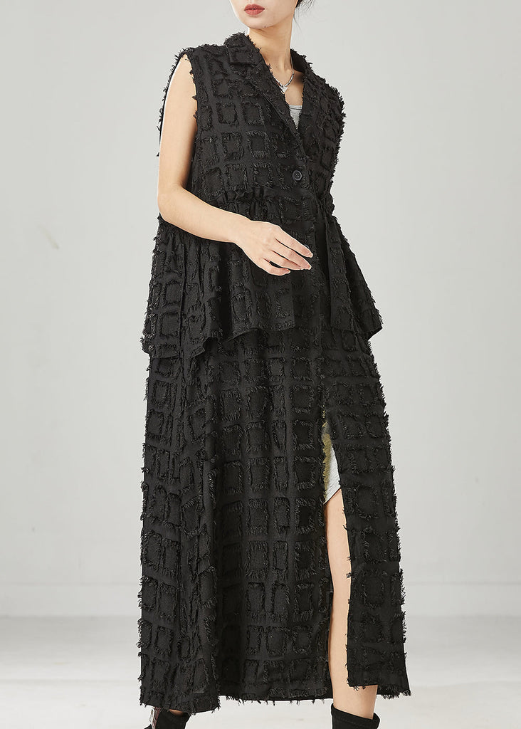 - Keep your look chic and stylish with our luxurious Black Loose Cotton Long Vests Tasseled Spring, crafted from premium cotton for a comfortable and elegant fit.