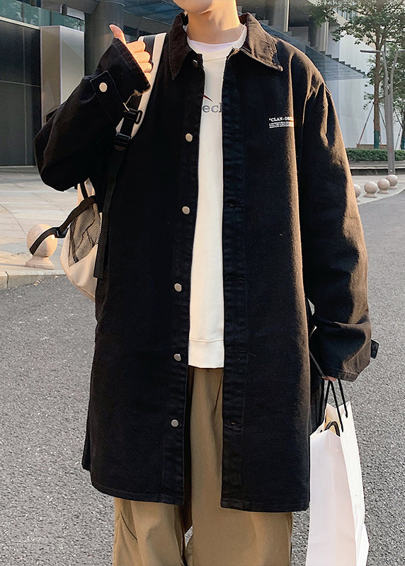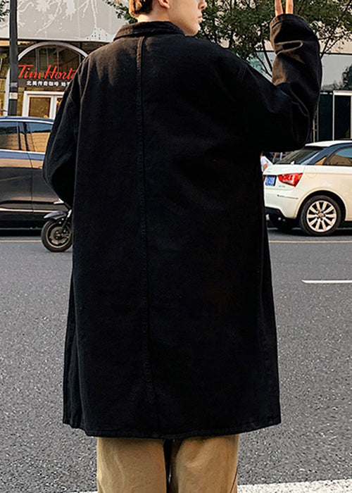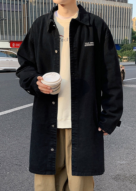 Black Print Pockets Coats Mens Coats Peter Pan Collar Spring YQ013
