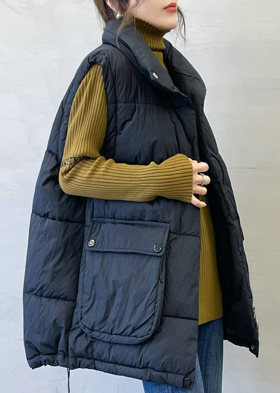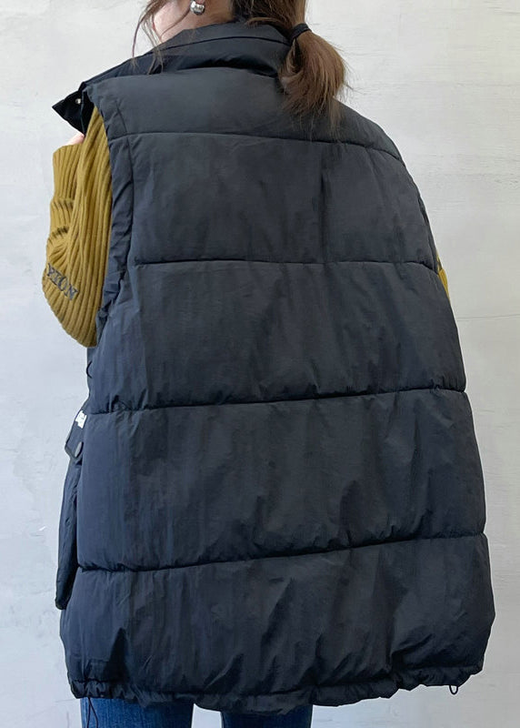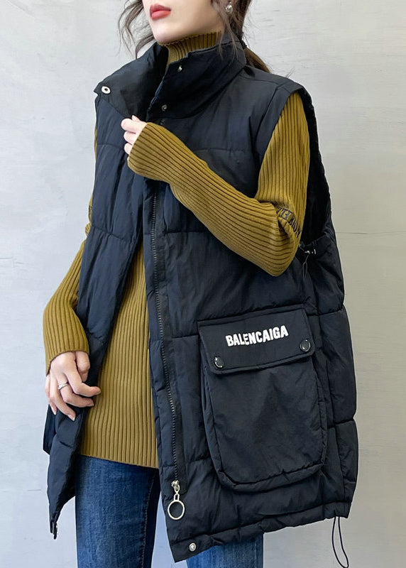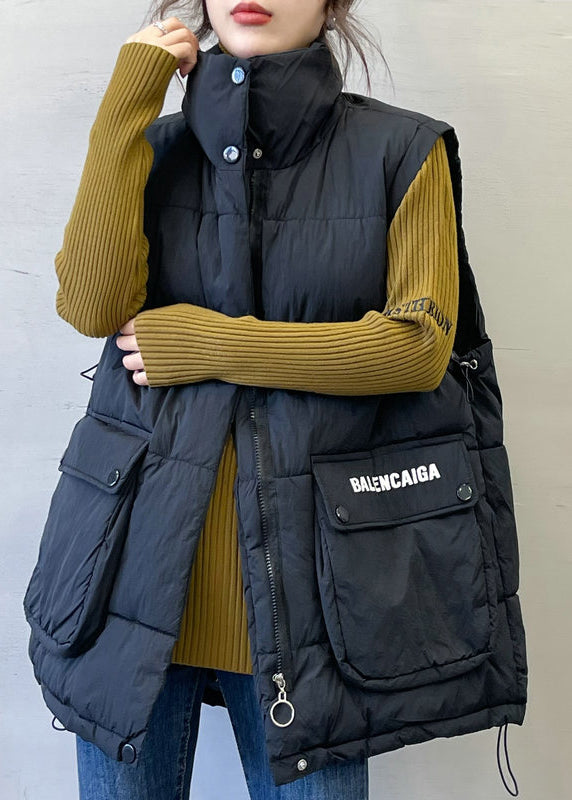 Black Print Pockets Cotton Filled Waistcoat Stand Collar Spring YW011