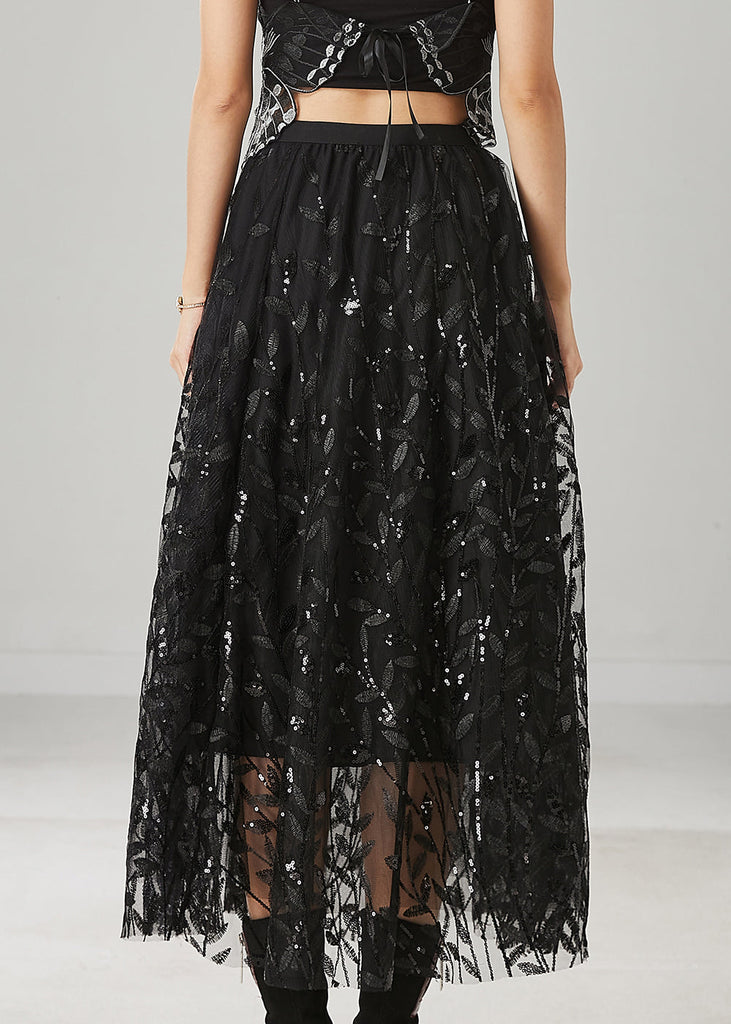 The Black Tulle Holiday Skirt Leaf Sequins Spring YU1019 is evocative, to say the least, but that's why you're drawn to it in the first place.