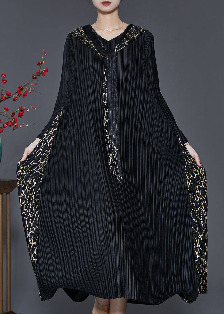 Bohemian Black Hooded Patchwork Wrinkled Maxi Dresses Spring SD1065