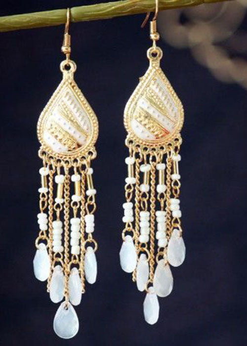 Bohemian Droplet Shape Crystal Tassel Metal Vacation Drop Earrings