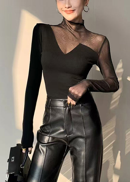 Boho Black Asymmetrical Patchwork Hollow Out Tops Spring YF028