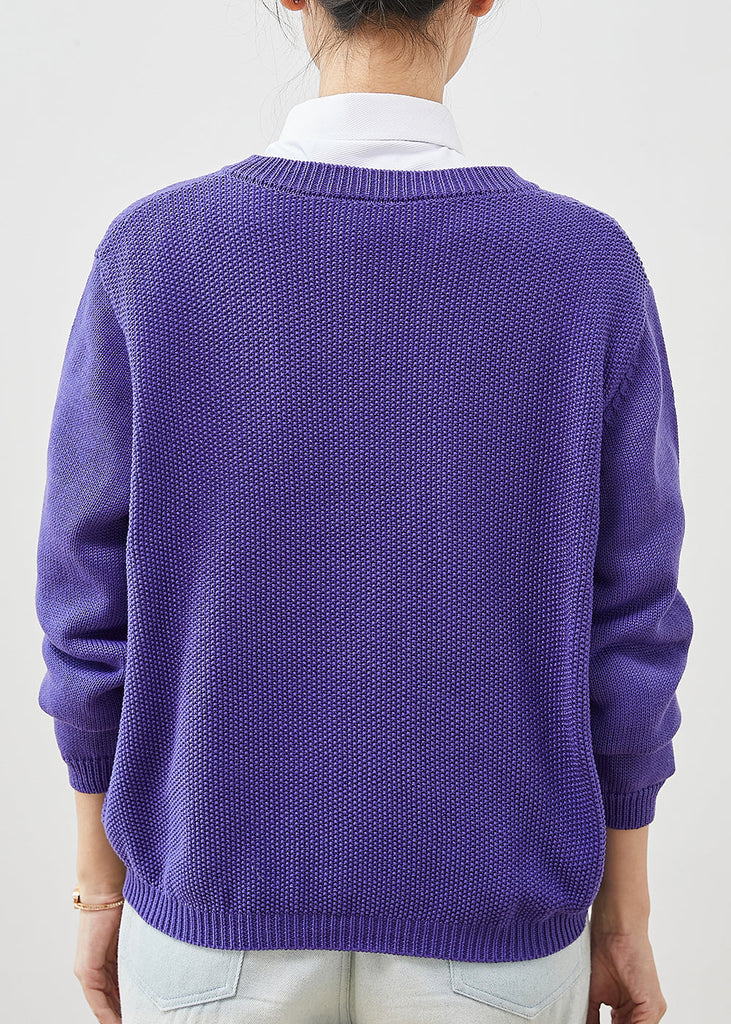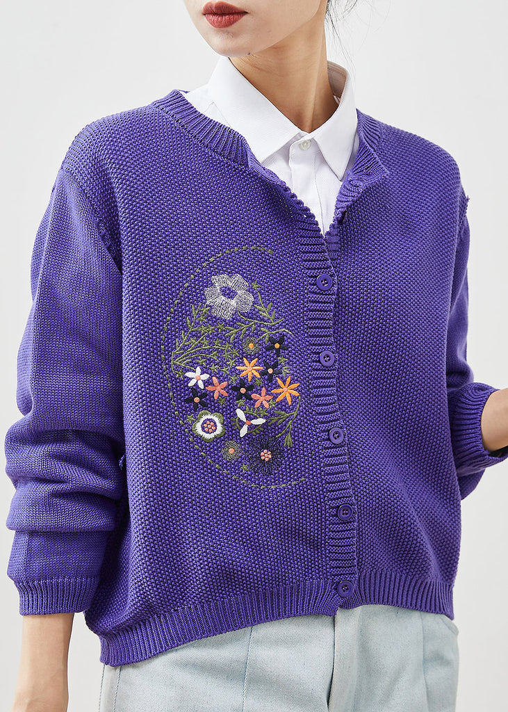 Boho Purple Embroidered Knit Cardigans Spring YU1041