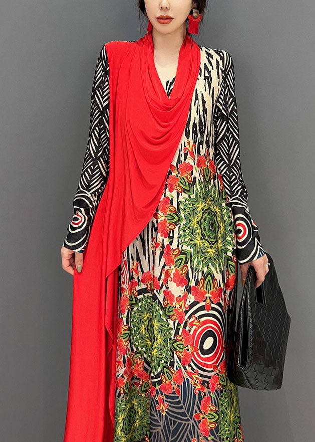 Boho Red Asymmetrical Patchwork Print Maxi Dress Spring