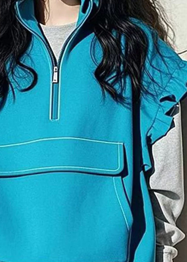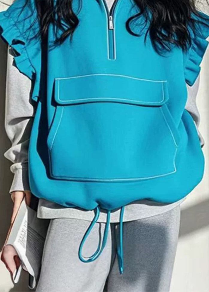 Boutique Blue Ruffled Patchwork Drawstring Cotton Vest Sleeveless TN042