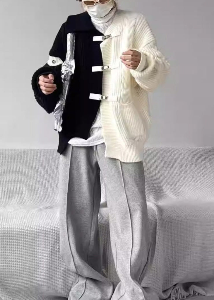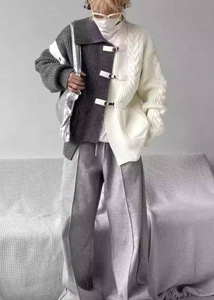 Boutique Grey Asymmetrical Buckle Patchwork Knit Sweaters Spring YY036
