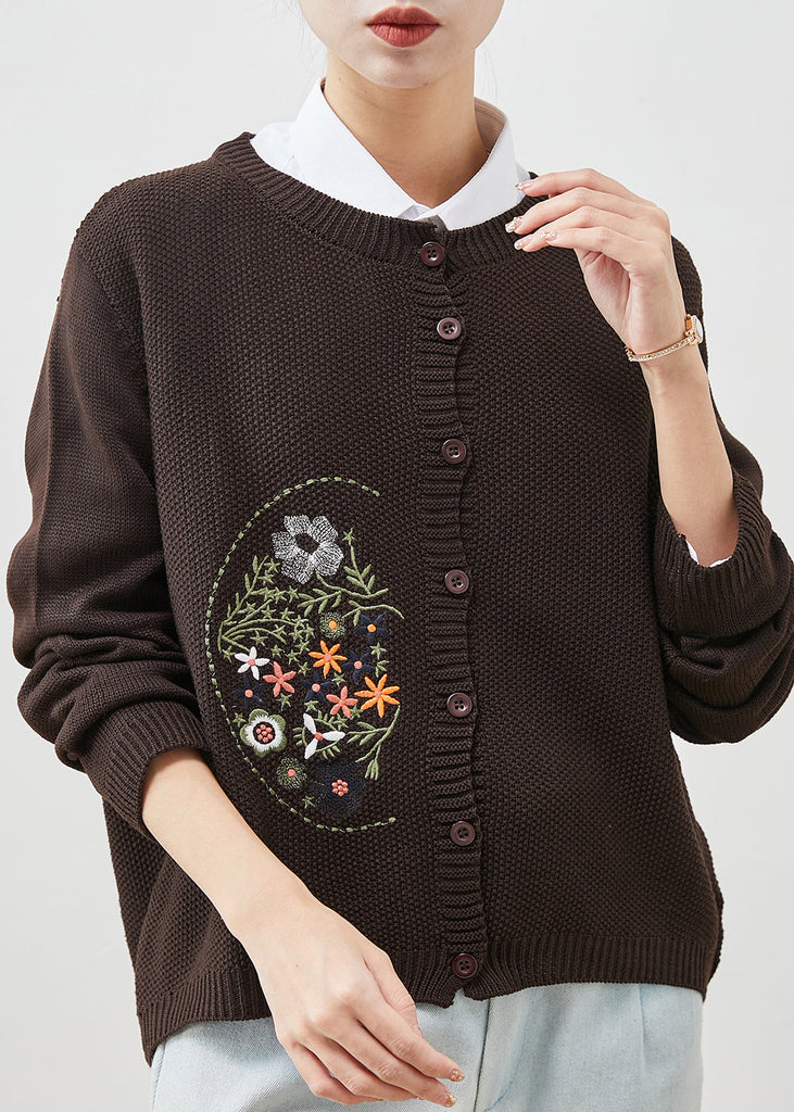 The Brown Cozy Knit Cardigan Embroidered Spring YU1044 is evocative, to say the least, but that's why you're drawn to it in the first place.