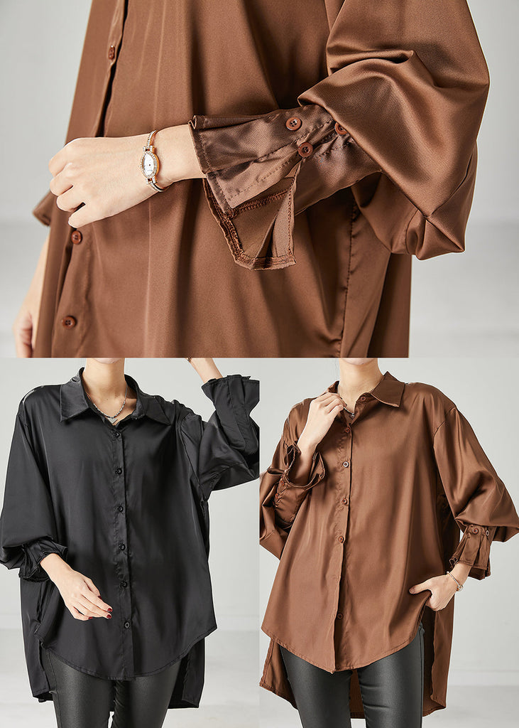 Brown Oversized Chiffon Blouse Low High Design Spring YU1052