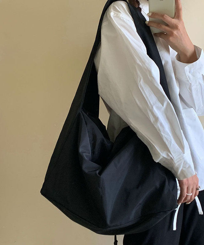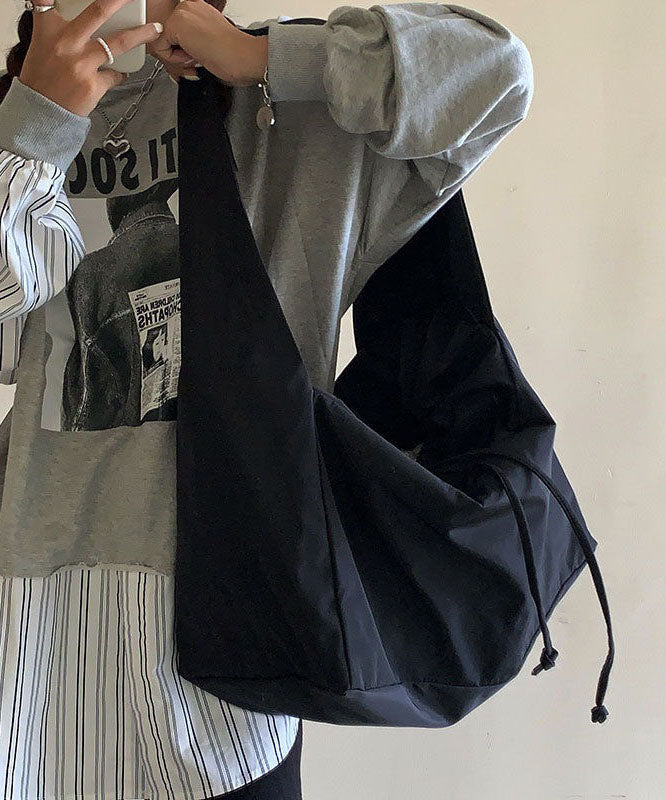Casual Black Patchwork Drawstring Oversize Satchel Handbag