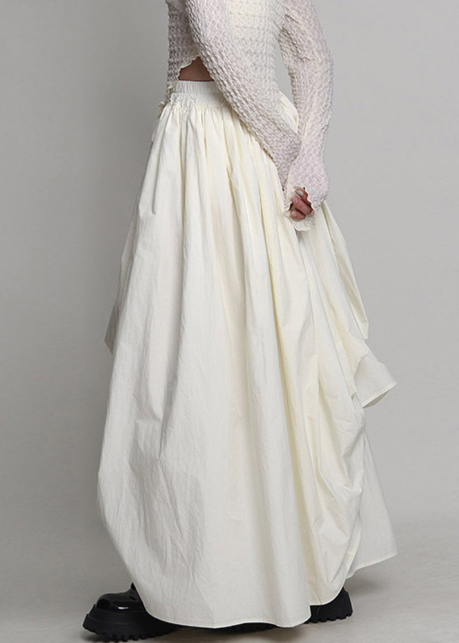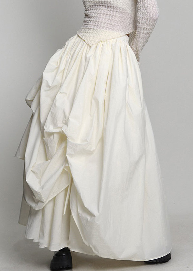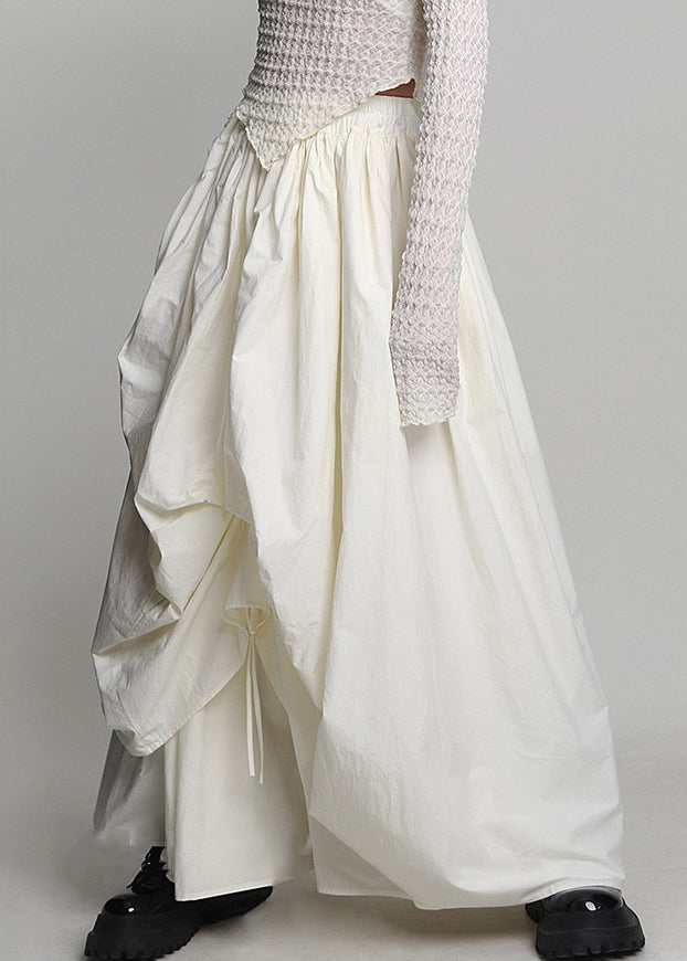 Chic Beige Lace Up Wrinkled Elastic Waist Cotton Skirt Spring AB1041
