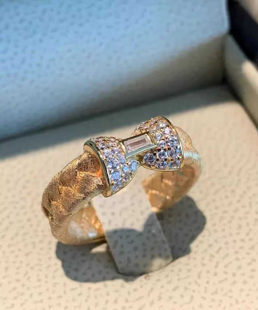 Chic Gold Sterling Silver Overgild Inlaid Zircon Weave Bow Rings QI057