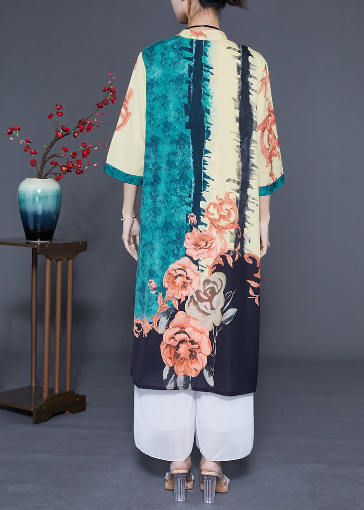 Chic Green Oversized Print Chinese Style Silk Women Sets 2 Pieces Spring