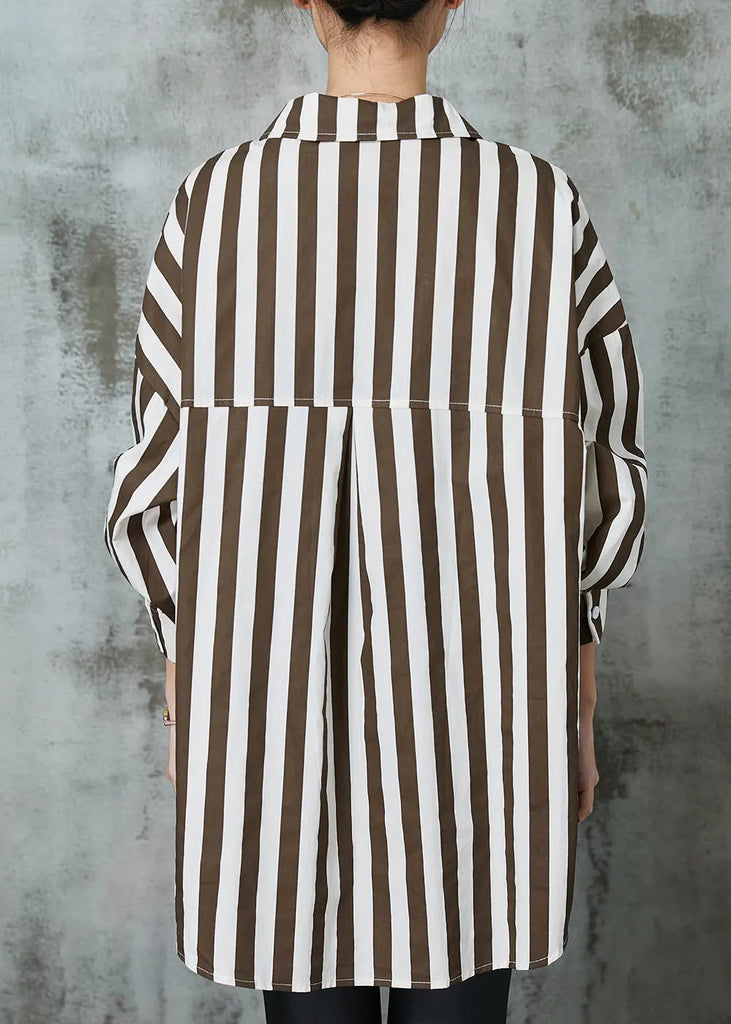 Chic Khaki Oversized Striped Cotton Shirt Tops SpringFabric: Cotton Blended