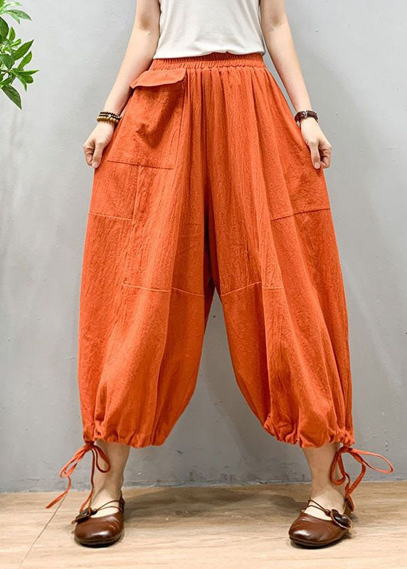 Chic Orange Wrinkled Drawstring Patchwork Linen Lantern Pants Summer LY0587