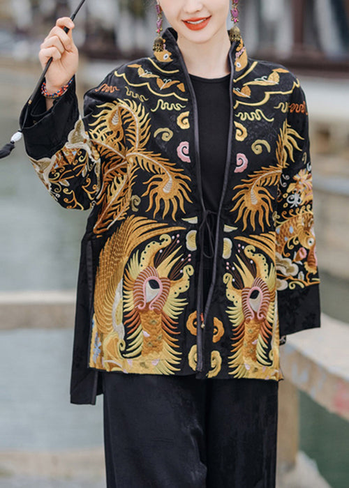 Chinese Style Yellow Embroidered Lace Up Silk Coats Spring Ada Fashion