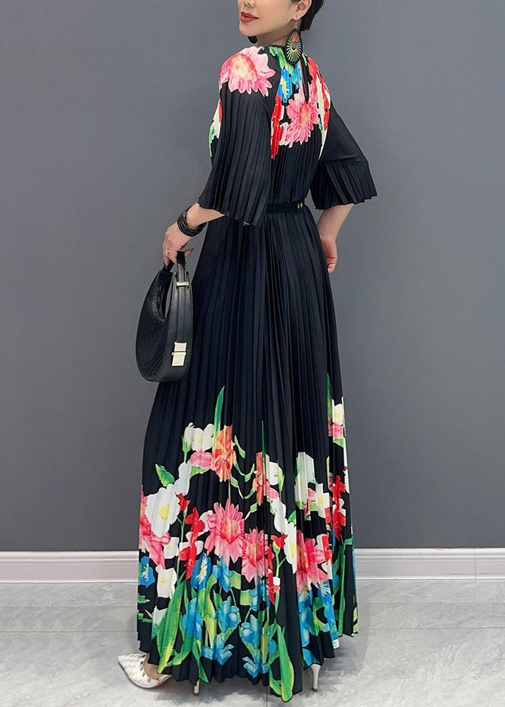 Classy Black O-Neck Print Flattering Maxi Dresses Half Sleeve AO1039