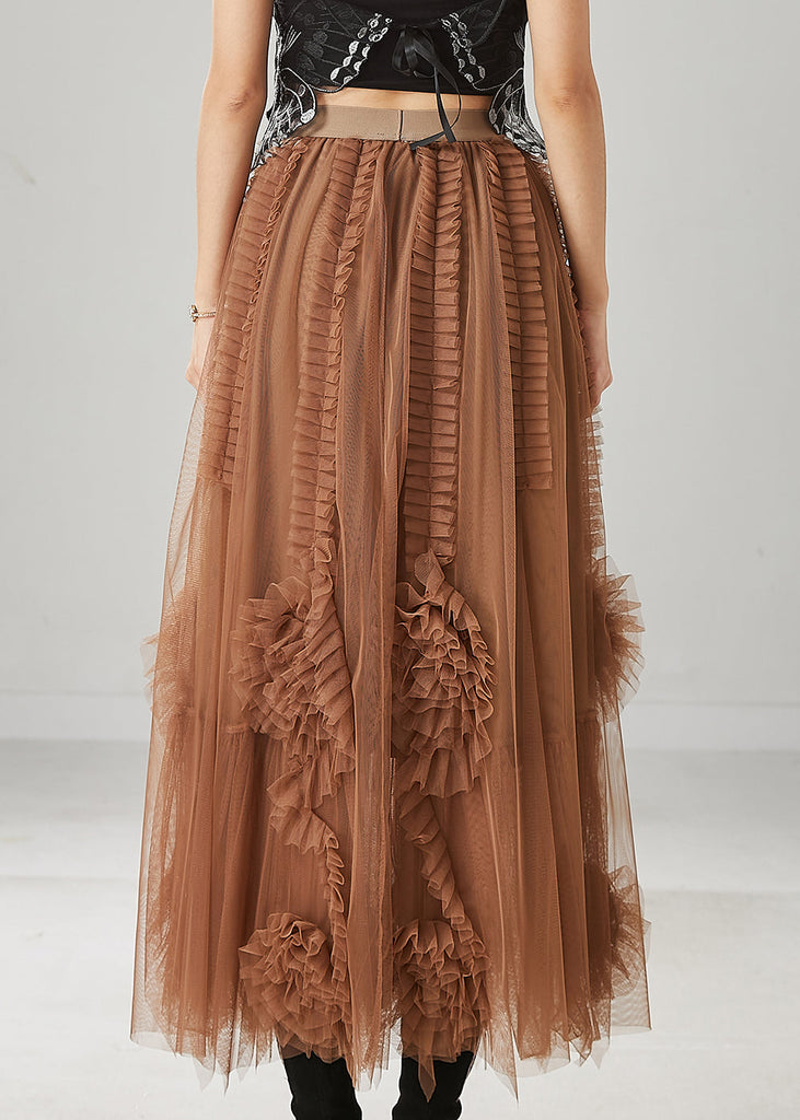 Classy Brown Ruffled Stereoscopic Floral Tulle Skirt Spring YU1063