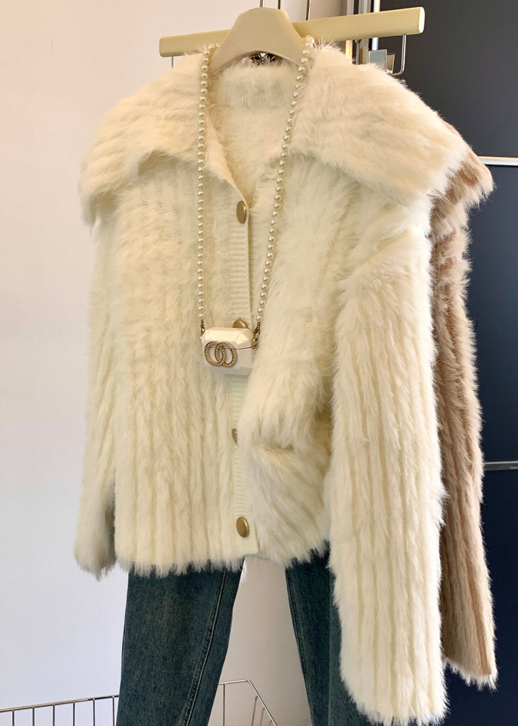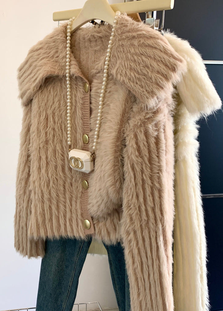 Experience the sophistication and elegance of our luxurious Cute Pink Peter Pan Collar Button Mink Velve Sweater Tops, perfect for the exclusive fashion-forward individual this Spring.