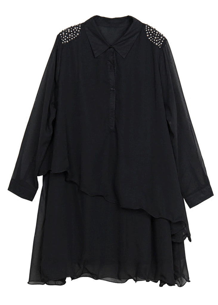 DIY Black Asymmetrical Design Rivet Chiffon A Line Dresses Spring