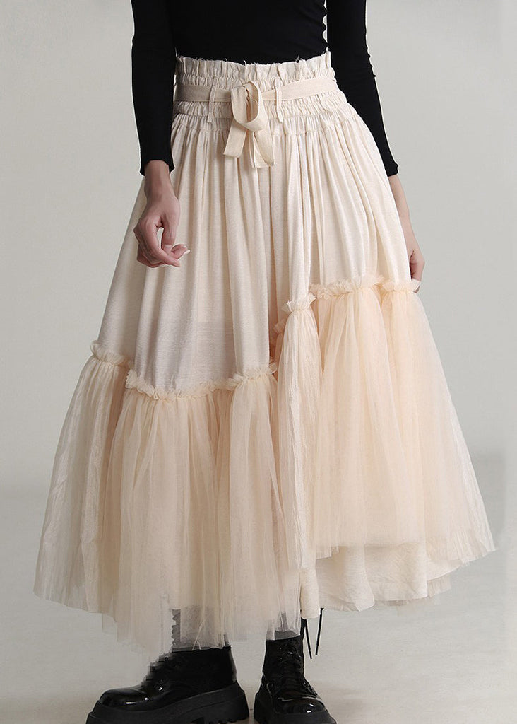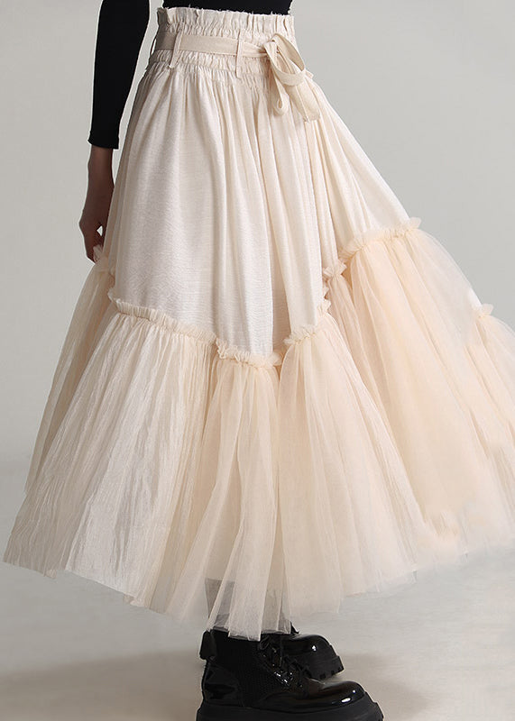 Elegant Apricot Ruffled Lace Up Tulle Skirts Spring AB1036