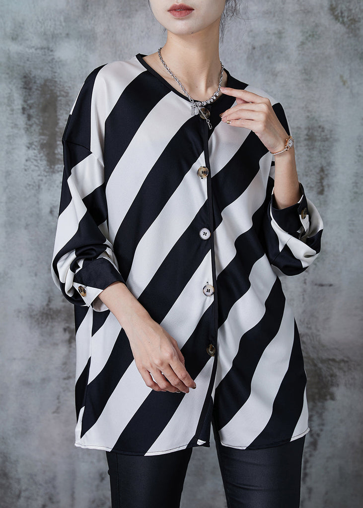 Elegant Black White Striped Oversized Chiffon Shirts Spring