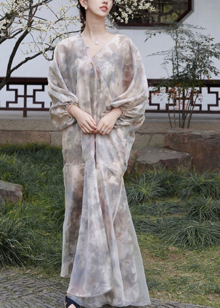 Indulge in the sophistication and exclusivity of our Elegant V Neck Print Patchwork Party Long Dress for the Spring season.