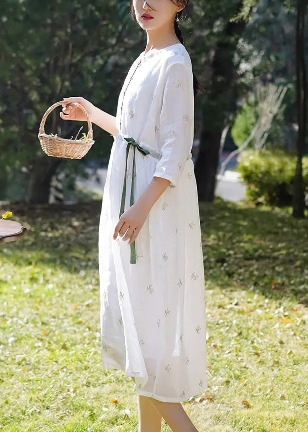 The Elegant White Embroidered Button Linen Dress Spring CG1003 is evocative, to say the least, but that's why you're drawn to it in the first place.