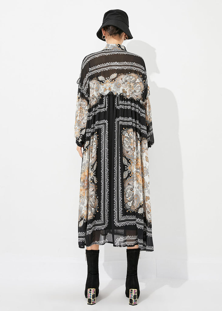 Fashion Black Print Oversized Wrinkled Chiffon Long Dresses Spring