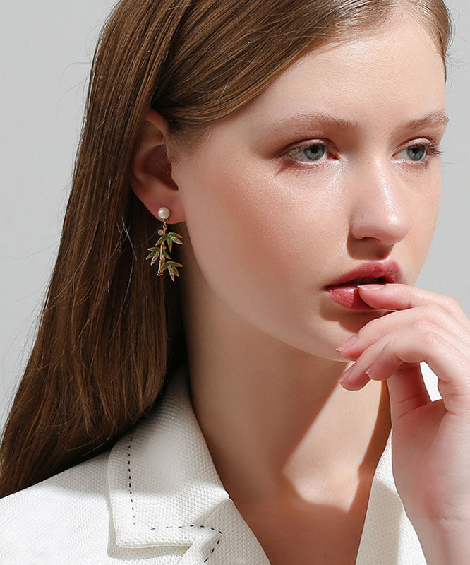 Fashion Green Overgild Zircon Pearl Bamboo Drop Earrings