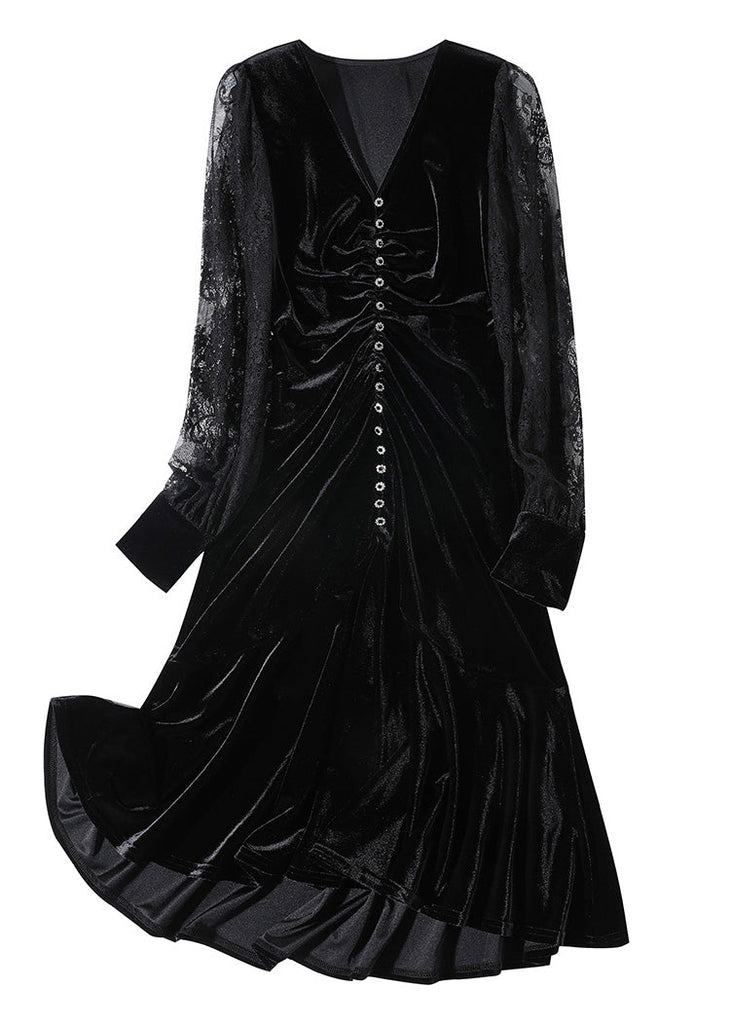 Imagine if you could be satisfied and content with your purchase. That can very much be your reality with the Fine Black V Neck Embroideried Tulle Patchwork Slim Velour Fishtail Dresses Spring LY0974.