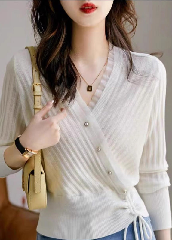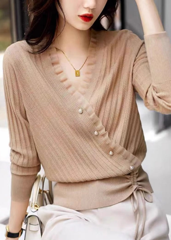 Indulge in the sophisticated allure of our Fitted Blue V Neck Patchwork Drawstring Cotton Knit Sweaters for Fall. Exquisitely crafted with luxurious cotton knit, these sweaters are a tasteful and exclusive addition to your wardrobe. The fall season has never looked so elegant. Fabric: Knitted Cotton Thread Size & Fit: Fit: This garment fits true to size. Length: Size S measures 19.5"from shoulder to hem Bust: Great for any cup size. Waist: Loose Fit. Comfortable room throughout midsection. Hip: Loose Fit - room for hips. Hand Wash Cold.
