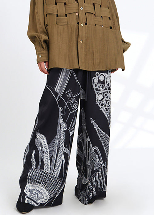 Introducing our French Black Print Silk Pants, cool and loose-fitting for maximum comfort. Elastic waistband ensures a perfect fit. Perfect for springtime strolls or an artistic evening out.