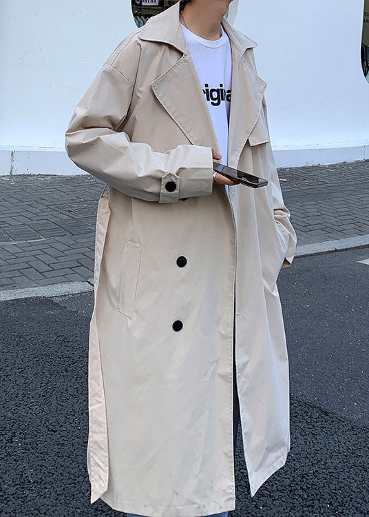 French Khaki Double Breast Tie Waist Cotton Mens Long Trench Coat Spring YQ002