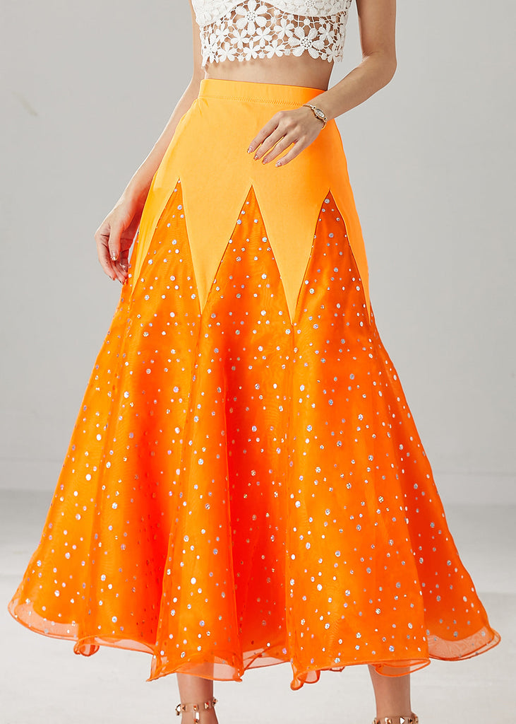 French Orange Silm Fit Patchwork Zircon Tulle Skirts Spring YU1034