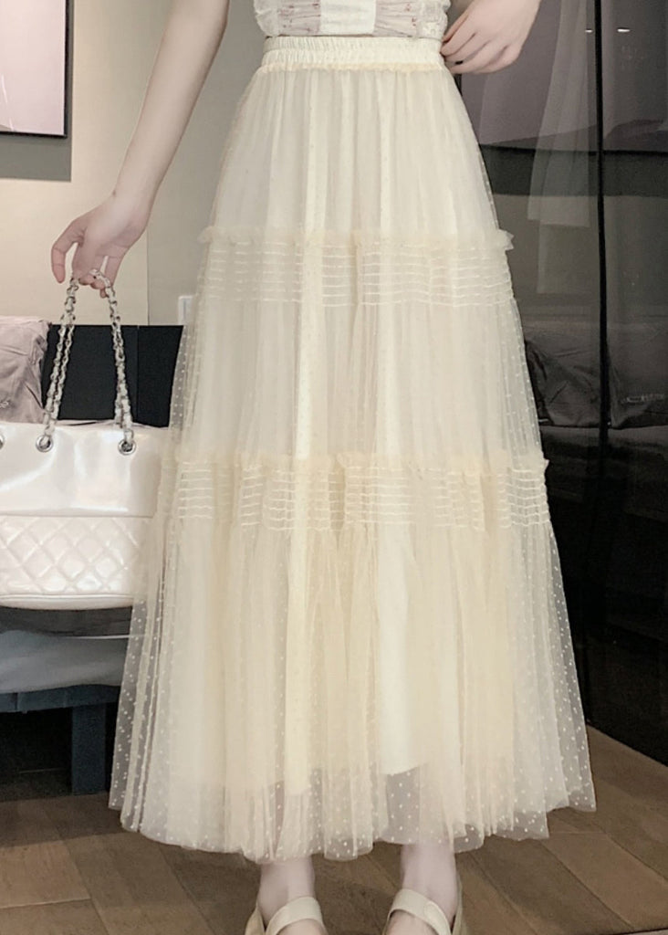 French Versatile Apricot Wrinkled Patchwork Tulle Skirt Spring QQ1019