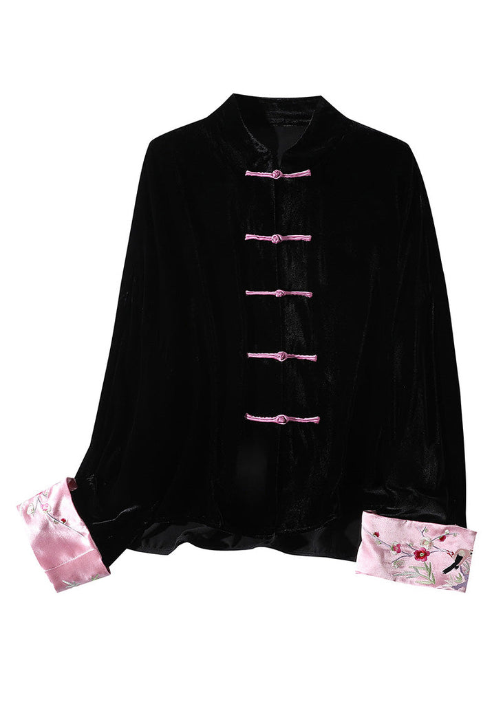 Every product is unique, just like you. If you're looking for a product that fits the mold of your life, the Handmade Black Print Button Silk Velour Shirt Spring LY0720 is for you.