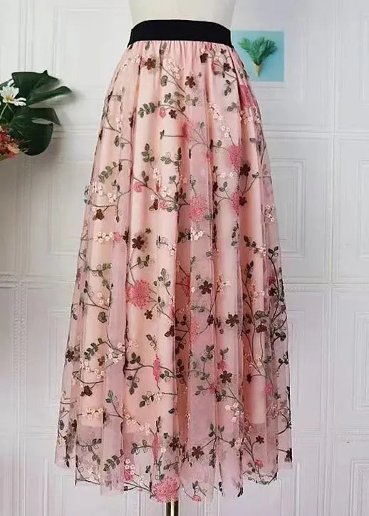 Handmade Green Embroidered Elastic Waist Tulle Skirts SpringFabric: Tulle