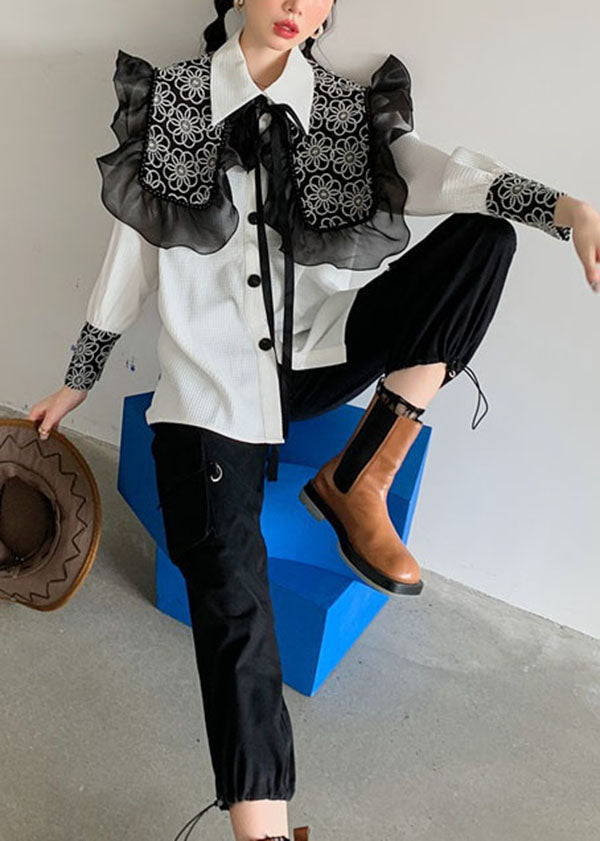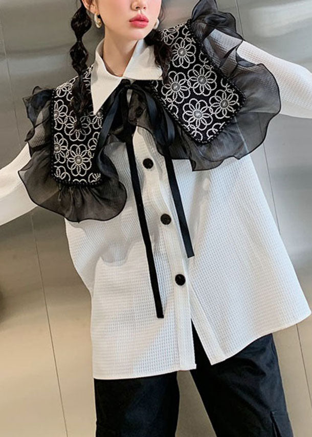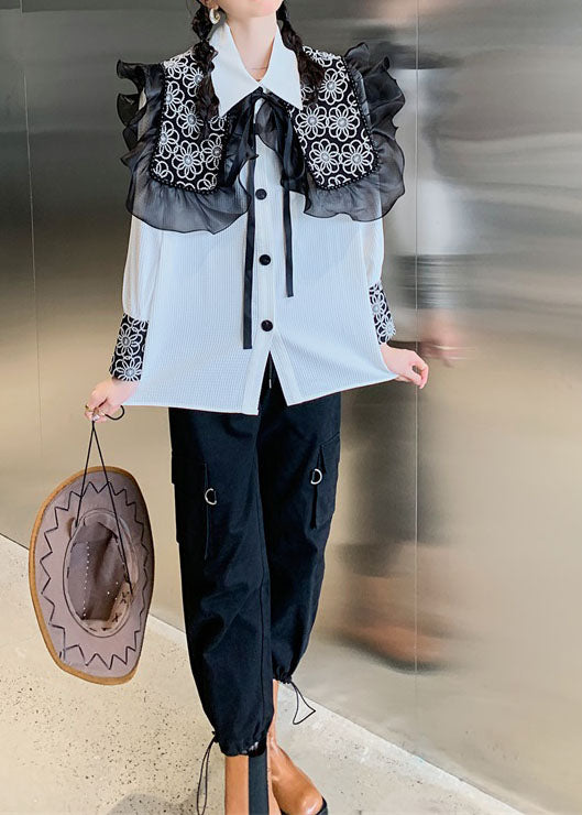Handmade White Embroideried Tulle Ruffled Patchwork Cotton Two Piece Set Spring