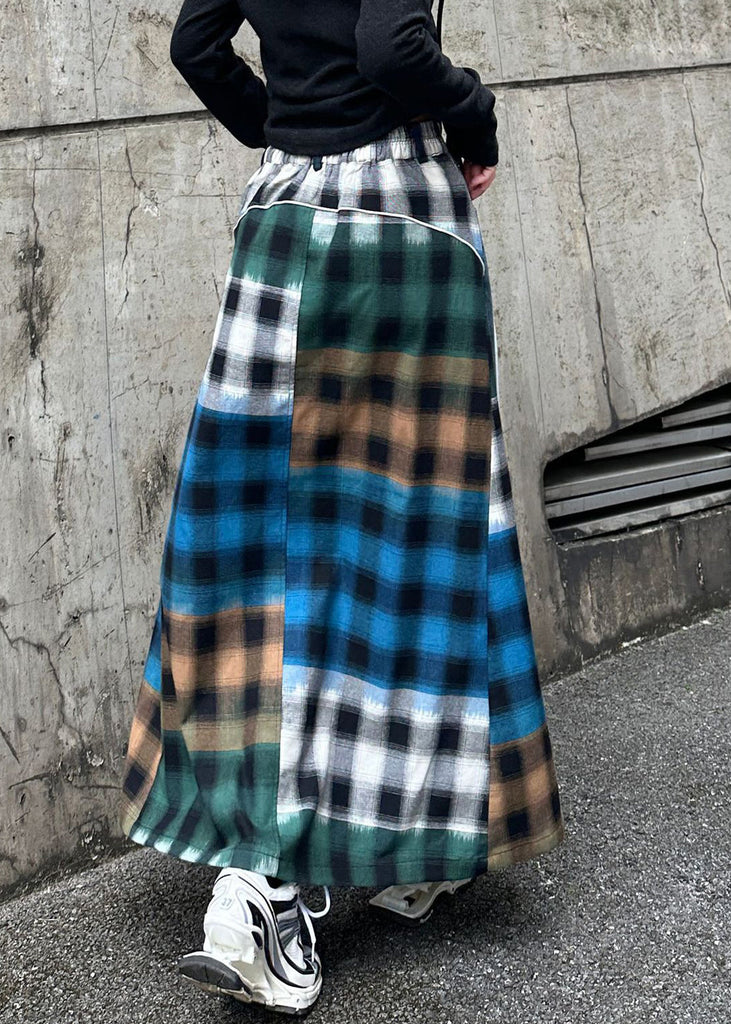 Loose Blue Plaid High Waist Patchwork Denim Skirt Spring