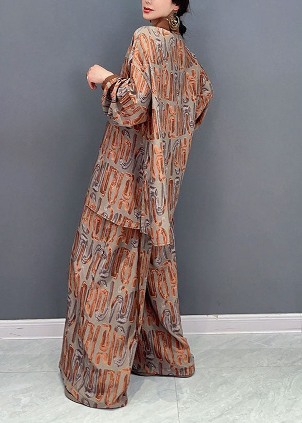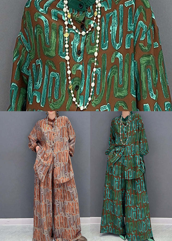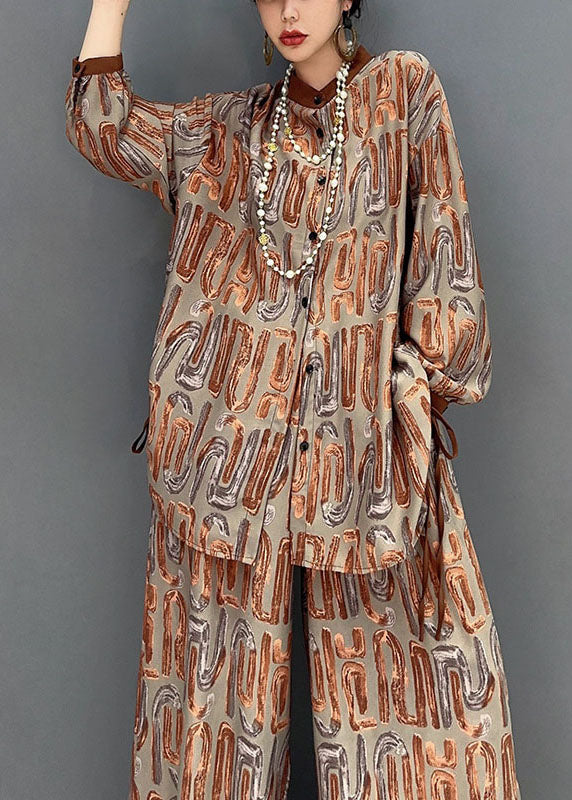 Khaki Oversized Silk Two Pieces Set Stand Collar Lace Up Spring