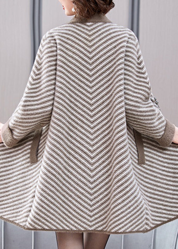 Khaki Pockets Button Mink Velvet Coats Spring TA017
