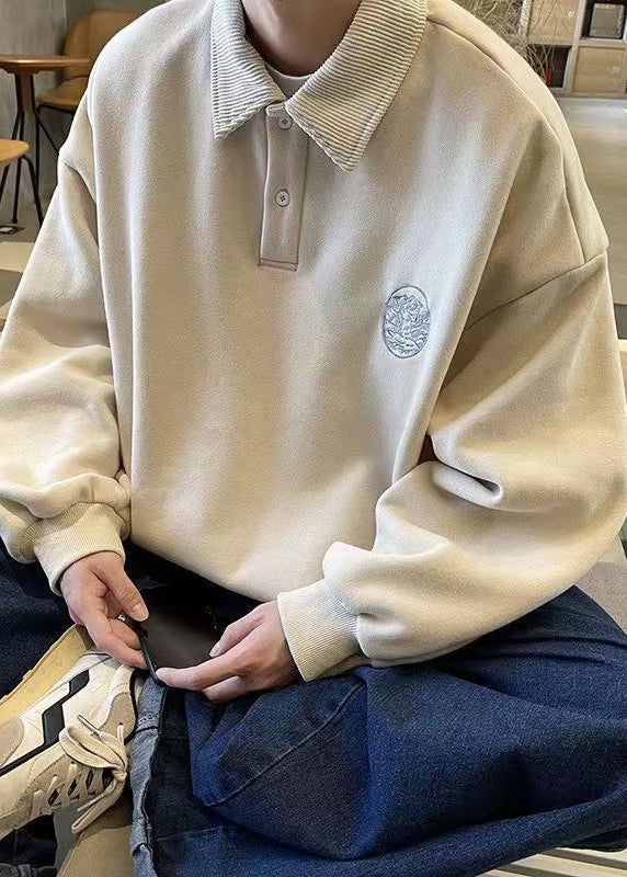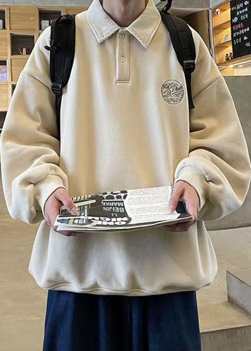 Cotton Sweatshirt Peter Loose TC027 Spring Pan Button Apricot Men Collar