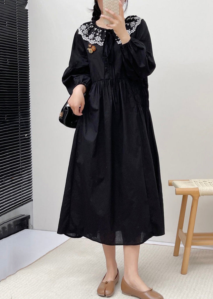 Every product is unique, just like you. If you're looking for a product that fits the mold of your life, the Loose Black Embroidered Lace Up Cotton Dress Spring NN017 is for you.