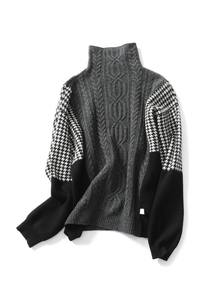 Indulge in luxurious style with our Loose Grey High Neck Patchwork Knit Sweater for the perfect addition to your spring wardrobe. Crafted with skillful artistry and a sophisticated touch, this sweater exudes exclusivity and elegance.
