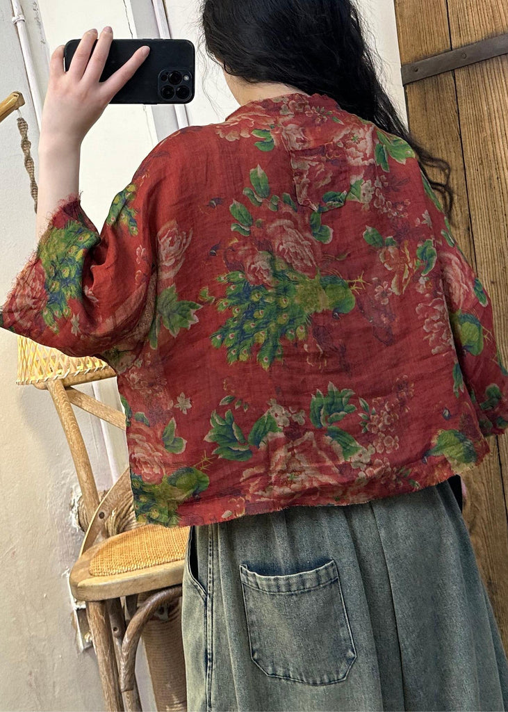 Loose Pink Button Print Pockets Linen Top Spring GG019 MZF-LTP240610