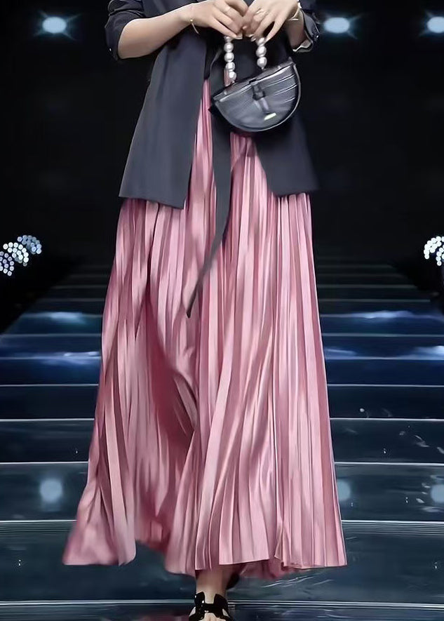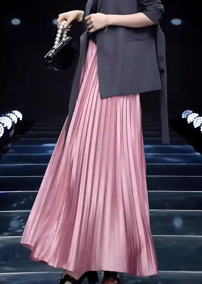 Loose Pink Wrinkled Solid Cotton Skirts Spring Fabric: Cotton Blended Size & Fit: This garment fits true to size. Length: Size 2XL measures 40.56"from waist to hem. Waist:Fitted - elastic waist allows stretch Hip: Loosely Fitted. room for hips. Hand Wash Cold.