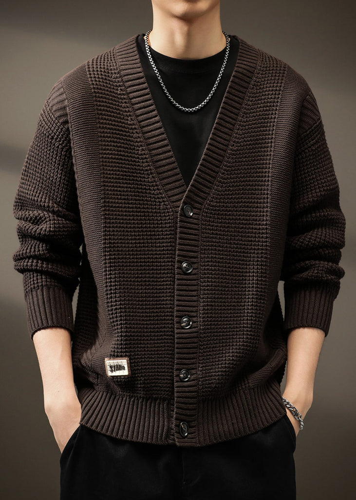 New Coffee V Neck Button Solid Knit Men Cardigans Spring
