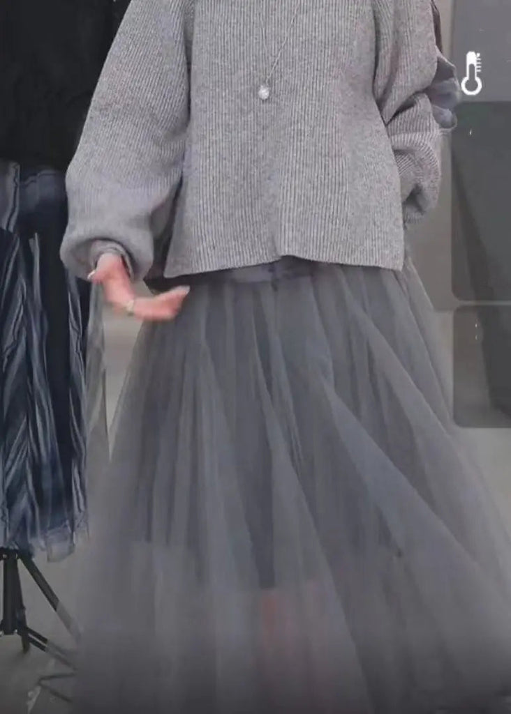 Modern Grey Asymmetrical Patchwork Tulle Skirts SpringFabric: Tulle