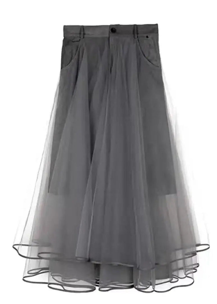 Indulge in luxury with our Modern Grey Asymmetrical Patchwork Tulle Skirts. Made with comfortable and versatile fabric, this skirt is sophisticated and effortlessly stylish. The intricate patchwork design adds a touch of elegance to any outfit. Perfect for the spring season.